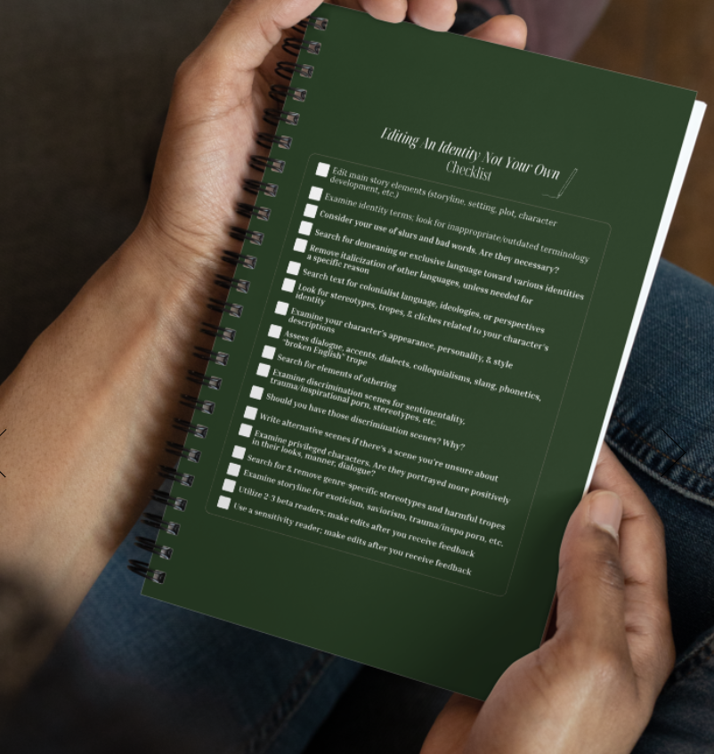 Downloadable editing checklist (Platinum only): This 12-step editing checklist will guide you throughout the editing process, instructing you on how to catch stereotypes, icky descriptions and dialogue, harmful tropes and storylines, and more.